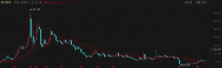 贵州百灵近十年下跌了85%,现股价跌到了5.63,而公司因为财务造假被立案调查。